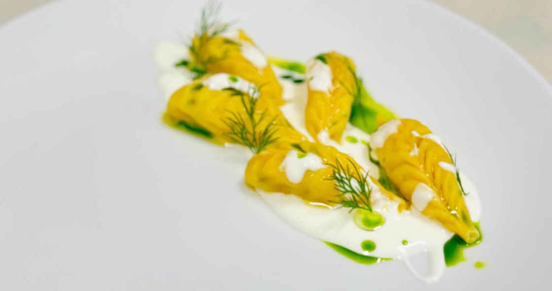 The reminder of home is what inspired me to create a new seven-course Sardininan tasting menu at COMO Cocoa Island’s Ufaa restaurant. I’ve used my traditional heritage, adapting Sardinian dishes to include local Maldivian ingredients and modern techniques. The result is pretty unique. The tasting menu begins with Sardinian flatbread served with ricotta and honey infused with orange juice, zest and other citrus notes. The bread takes eight hours to make, belying the simple recipe of semolina, yeast, water and salt. First, I mix the dough, then rest it for one-and-a-half hours. After that, I’ll divide it into portions then rest the dough for another three hours. I then roll it into flat disks, rest it for another half hour, before baking it in three stages. The point of all the resting is to create bread that will rise like a balloon. Once the bread is ready, I’ll brush it with olive oil, salt and rosemary before serving.